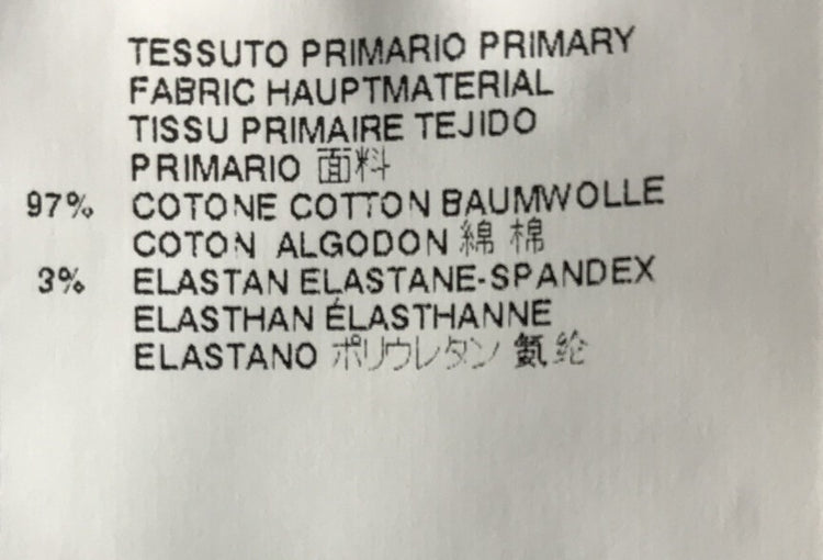 - Materials: 97% Cotton, 3% Elastane