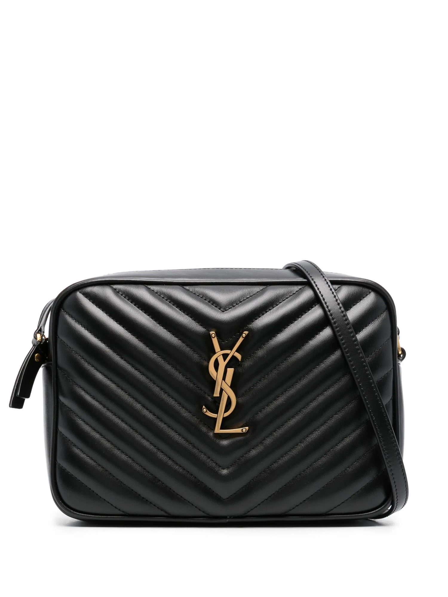 Lou Medium Ysl Camera Bag With Pocket In Quilted Leather In Black