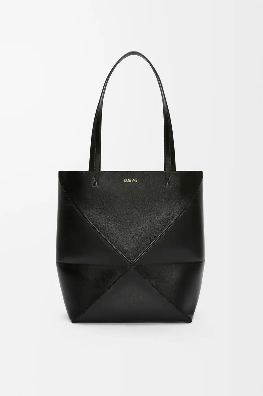 Medium Puzzle Fold tote in shiny calfskin