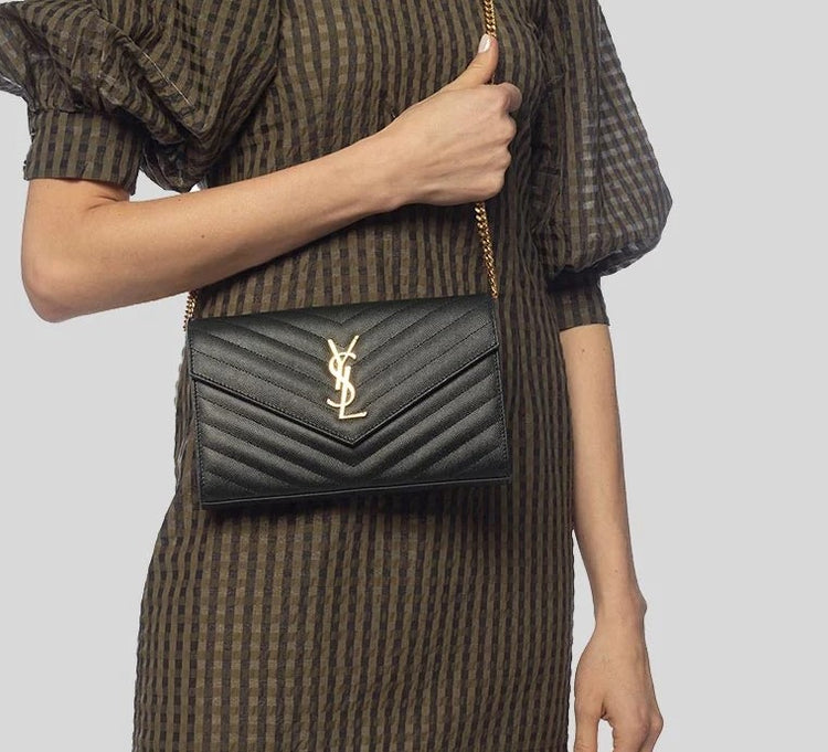 YSL Matelasse Chain Wallet In Grain De Poudre Embossed