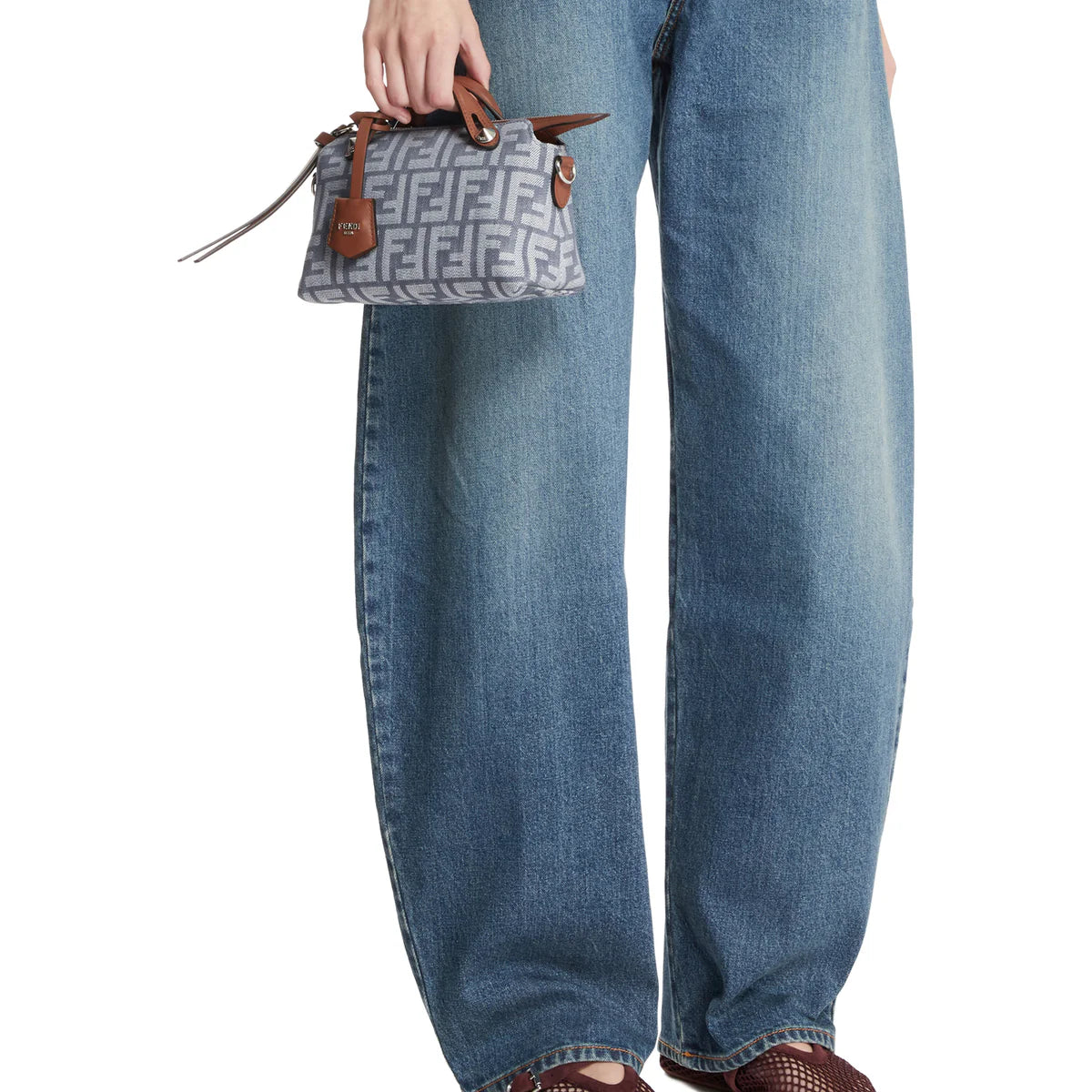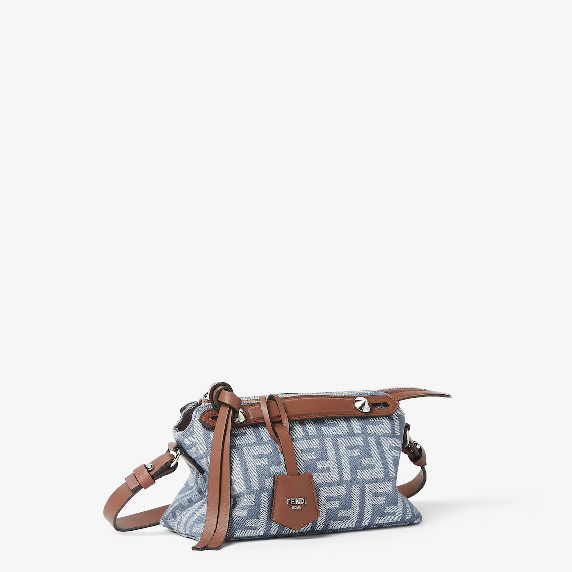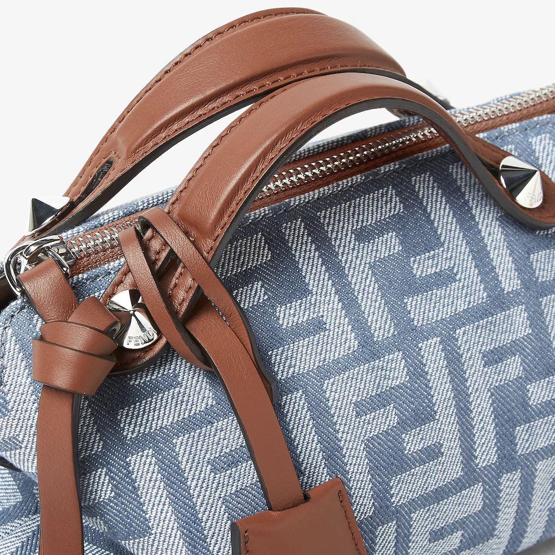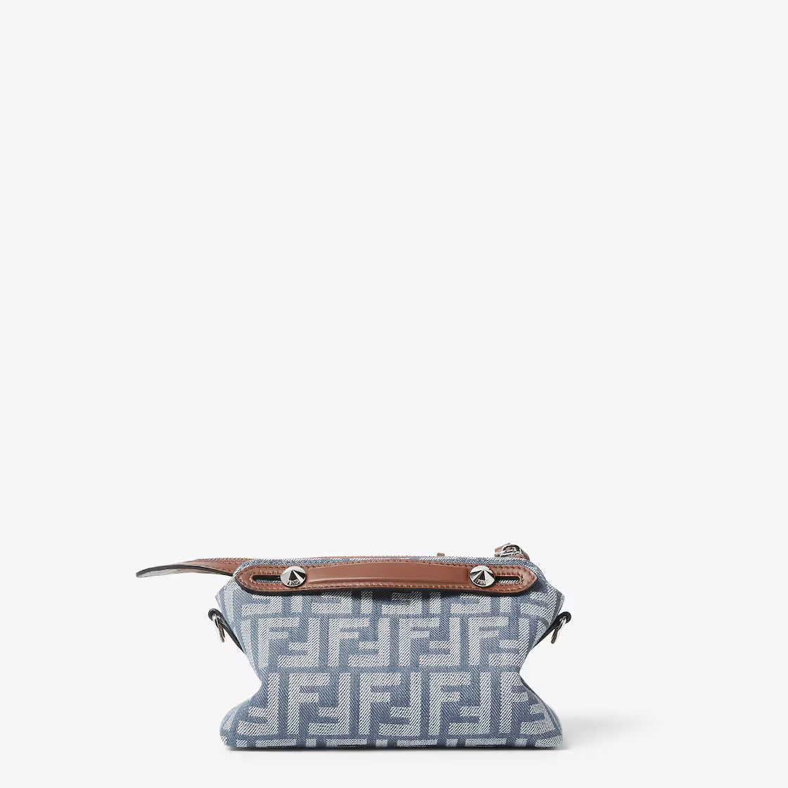 Material: Blue denim-effect FF Jacquard (56% polyester, 40% cotton, 4% elastane) with brown calfskin details, lining: 52% polyester, 48% cotton.