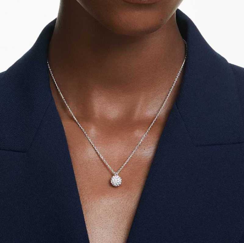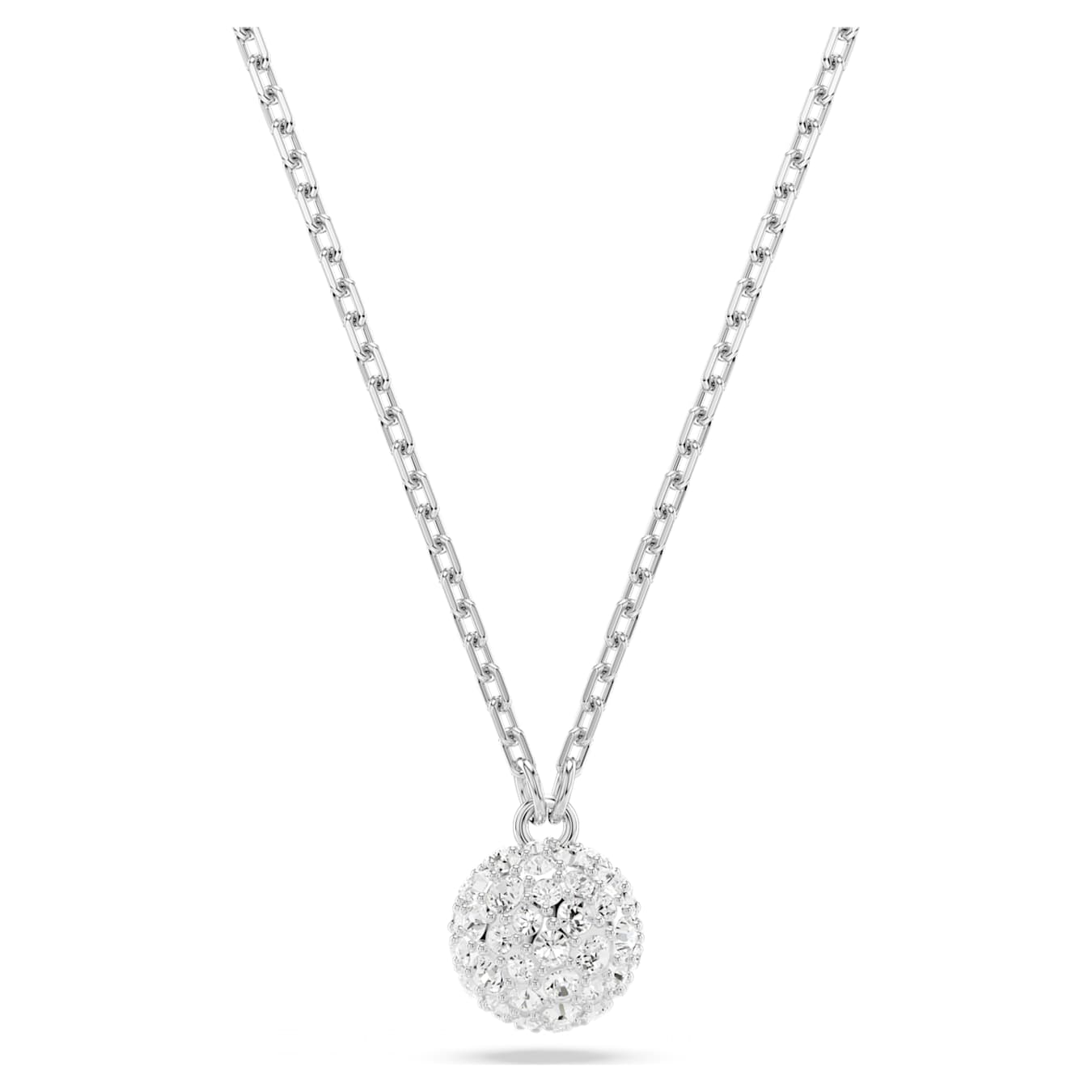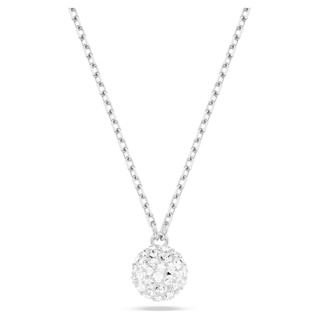Necklace Round cut, Sphere, White, Rhodium plated